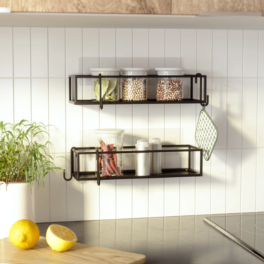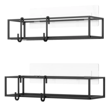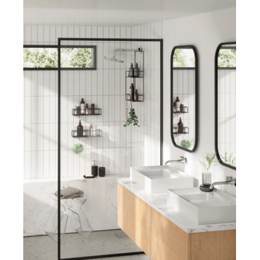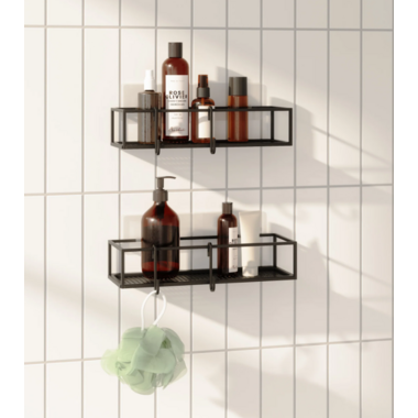Add elevated storage to your bath or shower space with Cubiko Shower Bins. These non-damaging shower storage caddies have a modern, bent wire design, making them easy to integrate with a variety of decor styles. Easy to install, Cubiko includes non-damaging, waterproof adhesive strips that can be applied on various surfaces such as tiles, dry wall, concrete, etc. (does not work on porous surfaces). Each bin holds 10lbs (4.5 kg) per bin and is made of rust-free metal. Includes two metal hooks to hold loofahs, small towels, and more.