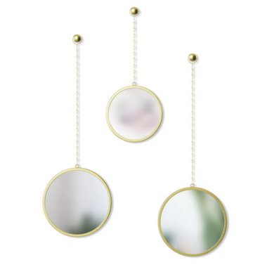 I received the Dima Circle mirrors in brass/gold and I love them so much! They are so versatile and pretty! They can be used as a group or separated and used in multiple spaces. They are also so so easy to hang up.