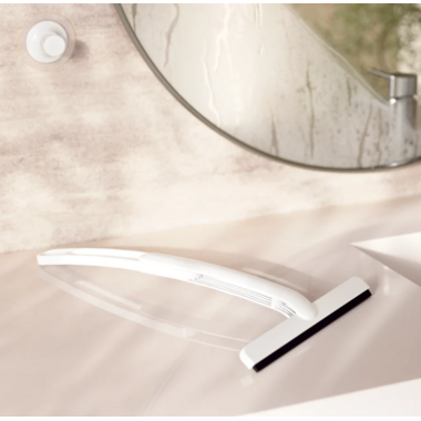 Flex Squeegee has an 11 ½ inch (29 cm) handle that extends to 16 inches (40 cm), giving you the extra reach that can make all the difference when cleaning surfaces in your washroom or other areas in the home.