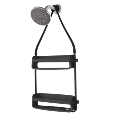 Store all your shower essentials in one place with Umbra’s highly functional Flex Shower Caddy. Flex was designed to take up minimal space in the shower while still accommodating larger bottle sizes. Made of a rigid plastic frame, Flex Shower Caddy features flexible silicone bands that give plenty of storage options. Flex also features two extra wide plastic shelves to accommodate all your shampoo, conditioner and body wash while the four hooks are perfect for loofahs and storing razors.
