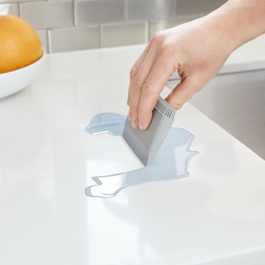 I've been searching for a tiny squeegee for my countertops, for some time now and was thrilled to find this Umbra Flex Sink Squeegee! It is perfect for use in the bathroom and the kitchen. I ordered 3 of them and glad I did, as I see it's sold out now. Made of soft silicone, so the product is durable and easy to clean, plus the compact size (without a traditional long squeegee handle) fits just right in your hand, making it super easy to use. The end with the brush has silicone "bristles" and that part is handy in the kitchen, to sweep bread crumbs on the counter. Highly recommended! Grab them when they're restocked!