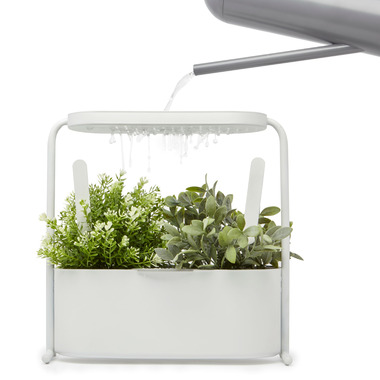 This planter is perfect for my little indoor herb garden! The water feature on top works well and the water gently drips onto the plants below. I love the little metal tags that come with the planter but haven’t used yet as I need a dry erase marker. As always umbra has created another stylish & functional item! A must have for an indoor herb garden!