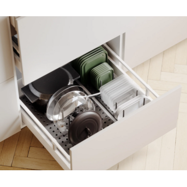 Rated 5 out of 5 by from Works amazingly well! After looking at the cost of peg board systems from the kitchen cabinet supplier of our new home we decided to try out the Peggy Drawer Organizer from Umbra and we are so glad we did! Theye are well made, cost effective and do an excellent job of keeping our dishes, pot lids and containers in place when we open and close the drawer. I've even ordered more to organize some additional drawers after seeing how well they work! Great rubber feet keep them in place and the board sits in the extention piece in a track rather than sliding in and out of the main peg board which makes sure it stays in place--great design!