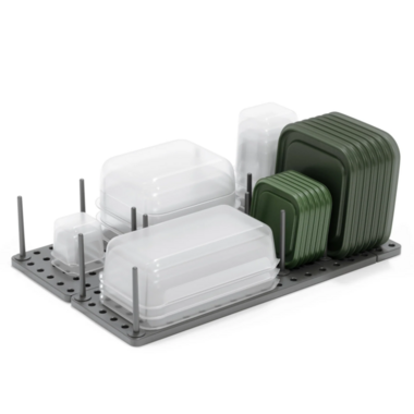 Rated 5 out of 5 by from Great organizer! Just bought Peggy and love her. Now my tupperware/glassware and lids are finally organized. No more searching for matching lids in a bin. Came with lots of pegs which are easy to push into place and organize the way you need. Going to buy more for my dishes. Like that extends and is easy to clean. Great product and aptly named!