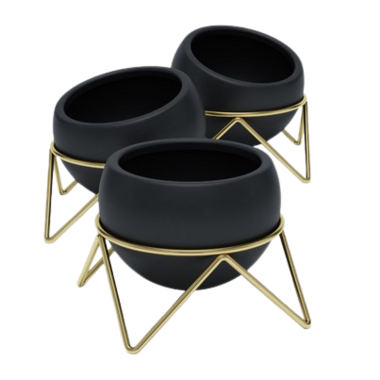 Instantly bring life to any room by adding more greenery to your space. This planter set will do just the trick. Its modern and metallic wire stand displays plants to be shown off at their best angle. This trio of ceramic planters can be placed in your living room, kitchen, desk, bedroom or window sill to add the perfect amount of greenery inside.  Looking for a decorative indoor pot for faux plants? No problem.