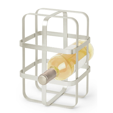 Umbra Pulse Wine Rack is a stackable flat wire plated metal wine rack. This wine rack works in the kitchen or any room in the home. It holds up to 6 bottles and comes with 4 clips for stacking, and non slip adhesive pads.