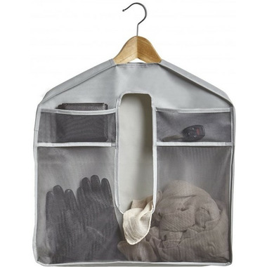- Clever design: Stash’s mesh pockets fit over a hanger to store scarves, gloves, and other accessories, helping to keep your closet neatly organized