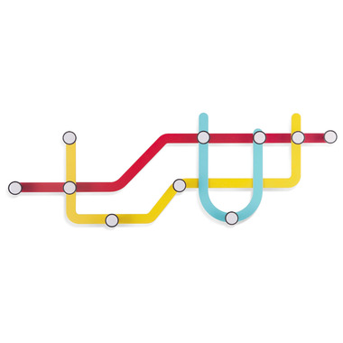 Inspired by popular public transit maps, which are extremely graphic and interesting. This product combines the use of functional hooks with wall décor.