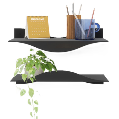 Elevate your walls with Surf Wall Shelves, a sleek and functional set of two powder-coated metal shelves that bring a subtle wave-like ripple to your space. Designed for both style and stability, Surf shelves seamlessly clip into each other with a hidden connector for a clean, modern look. Each shelf holds up to 15 lbs (6.8 kg) and can be mounted in multiple orientations, allowing you to create a customized display. Easy to install and made from durable 100% steel, Surf Shelves blend art and function to make any wall a statement.