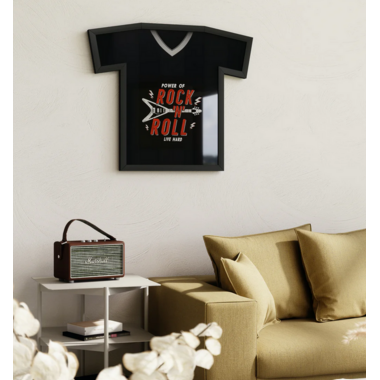 This unique T-Shirt display case is made to showcase your favorite sports, concert, graphic or athletic t-shirts. Since its shaped like a t-shirt, you can easily fold your shirt into the frame for a compact display that will keep it looking pristine.