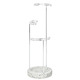This jewelry stand is designed with three posts of varying heights to accommodate jewelry of any length. At the base of the tree is a dish, which allows for additional storage of smaller accessories, like earrings and broaches. The stands unique double wire detailing on each post makes for secure display of earrings or cufflinks.