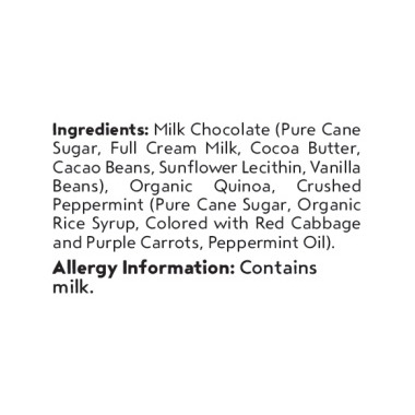 Crispy quinoa lightly covered with premium milk chocolate and peppermint. Healthy ingredients in disguise!