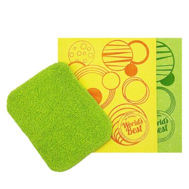 Odour resistant. Quick drying. Made from cotton and cellulose fibres, they hold up to 20x the weight in water. Replaces 15 rolls of paper towel. Measures: 4.75" x 7.35".