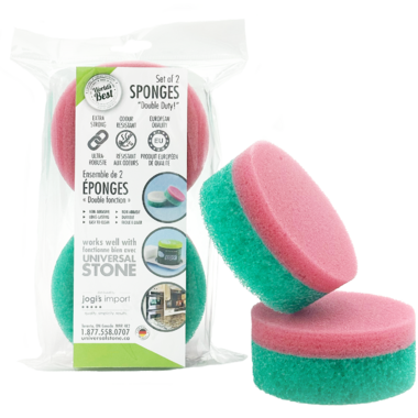 This 2-sided non-abrasive, long-lasting, and easy to clean sponge is odour-resistant and quick-drying. The pink side can be used for delicates, like jewellery and the green side is great for tough jobs. Used alone or with Universal Stone!