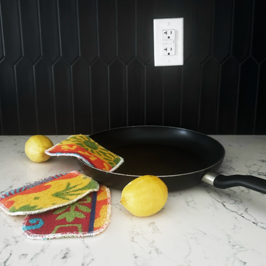 The Original Pot Scrubbers are great for non-stick cookward, glass and ceran cooktops. Dishwasher safe, easy to clean, and non-abrasive scrubber made from cotton.