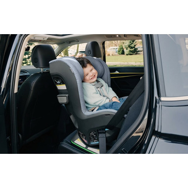 Tether them better: The Multi-Directional Tether reduces seat rotation and stress on the child’s head and neck in the event of an impact and is strongly recommended with both rear and forward-facing installations. When used in rear-facing mode, the Multi-Directional Tether reduces potential injury by 45%.