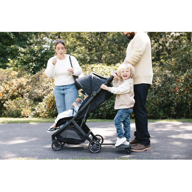 The PiggyBack ride along board easily attaches to your Minu stroller to allow your toddler to join in the stroll, even when they are too tired to walk on their own.