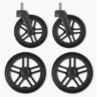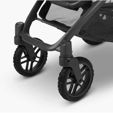 Introducing the pioneering All-Terrain Wheel Kit, carefully engineered to optimize the performance of your Vista stroller on challenging terrains. With four rugged, never-flat wheels and a convenient storage bag included, this innovative kit is thoughtfully designed to effortlessly navigate through snow, cobblestone, and uneven surfaces.
