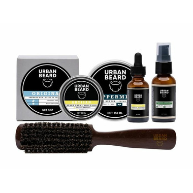 This kit contains: Beard Oil, beard Balm, Shampoo Bar, Beard Butter, Cleansing Conditioner, Beard Brush