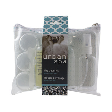 This adorable kit has all you need for your carry-on travel bag. It comes in a clear zippered bag with; one clear 25 ml spray bottle, two 50ml clear bottles with dispensing caps, and three clear 12ml lotion jars with caps. It complies with current worldwide air travel regulations to take the hassle out of travel.