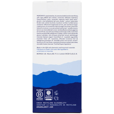Aqua/water/eau Leuconostoc/radish Root Ferment Filtrate, Salix Nigra (Willow) Bark Extract, Rosmarinus Officinalis (Rosemary) Flower/leaf/stem Water, Hamamelis Virginiana (Witch Hazel) Water*, Glycerin, Aloe Barbadensis Leaf Juice Powder*, Sodium Hyaluronate, Levulinic Acid, Sodium Levulinate, Vaccinium Myrtillus Fruit/leaf Extract, Saccharum Officinarum (Sugarcane) Extract, Acer Saccharum (Sugar Maple) Extract, Citrus Aurantium Dulcis (Orange) Fruit Extract, Citrus Limon (Lemon) Fruit Extract, Oryza Sativa (Rice) Seed Extract*, Camellia Sinensis Leaf Extract, Betula Alba Leaf Extract, Lactobacillus/arundinaria Gigantea Ferment Filtrate, Caprylyl/capryl Wheat Bran/straw Glycosides, Fusel Wheat Bran/straw Glycosides, Polyglyceryl-5 Oleates, Sodium Cocoyl Glutamate, Glyceryl Caprylate, Olea Europaea (Olive) Leaf Extract, Pseudotsuga Menziesii (Balsam Oregon) Branch/leaf Oil*, Lavandula Angustifolia (Lavender) Flower Oil*, Rosmarinus Officinalis (Rosemary) Leaf Oil, Pelargonium Graveolens Oil*, Boswellia Carterii Resin Extract, Alcohol*, Leuconostoc Ferment Filtrate, Superoxide Dismutase, Soybean Peroxidase, Citronellol, Linalool, Limonene *certified Organic Ingredients