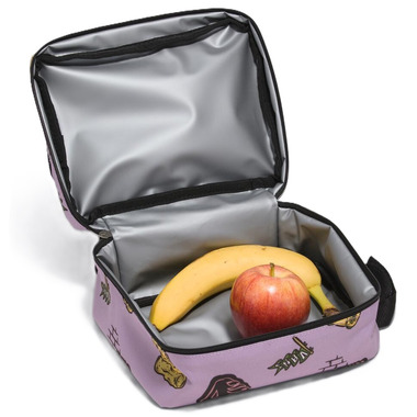 Ramp up your lunch session with the Old Skool Lunch Bag. Featuring a muted lavender with illustrated details, this lunch bag includes a main zippered compartment, a front mesh zip pocket, hook and loop closure handle for easy carrying, and a name tag at the back.