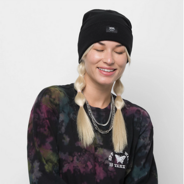 The Breakin Curfew Beanie has a fine rib knit that will keep you cozy with classic Vans style. This cuffed beanie is made with 94% acrylic, 5% nylon, and 1% elastane.
