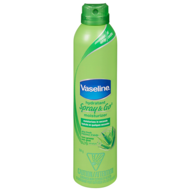 Vaseline Spray & Go Moisturizer is a line of quick, convenient spray lotions that moisturize deeply and absorb in seconds. The revolutionary continuous-spray system dispenses lotion quickly and evenly for all-over coverage. The unique formula includes a multi-layer moisture complex, so lotion absorbs into skin with a few quick rubs. Skin is instantly moisturized, not sticky or greasy.