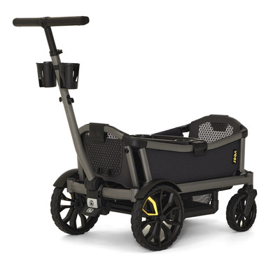 Cruiser City gives your family the fun and all-terrain versatility of a Cruiser but offers the push steering of a traditional stroller. Cruiser City is perfect for families that love to push on sidewalks, paths and through local attractions with seating for 2. Cruiser City features swivel wheels furthest from the handle, which enable it to be steered like a traditional stroller when pushing on smooth terrain. The handlebar can also drop into wagon mode for pulling over uneven terrain. Cruiser City paves the way for the ultimate cruising experience. Cruiser City comes equipped with two cup holders and a Snack+Drink tray.