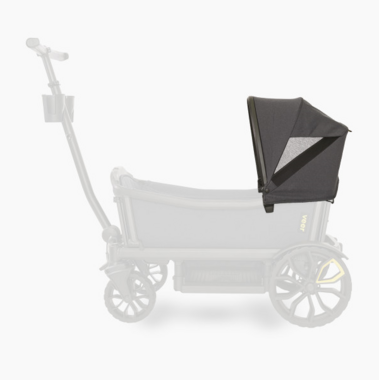 Veer Retractable Canopy: Veer’s Retractable Canopy quickly and intuitively clips onto Cruiser’s frame and easily extends up and down. One or two can be attached above either seat. A peak-a-boo window allows you to see your precious cargo and discreet, hidden magnets hold the window in the up position. Canopy works perfectly with Napper to create the perfect rest stop for young ones.
