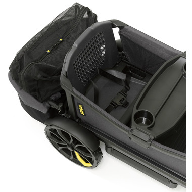 Designed to add even more cargo space to the Cruiser, our lightweight aluminum and soft-sided storage basket mounts solidly into the Cruiser”s two anchor points behind the rear seat. It folds for easy transport or storage without removal. The soft sided construction is removable and machine washable. A zipper hood either discreetly rests on the bottom of the basket or doubles the capacity by covering clothes and other bulky items. Drink and Snack Tray and Napper both fit comfortably in this accessory.