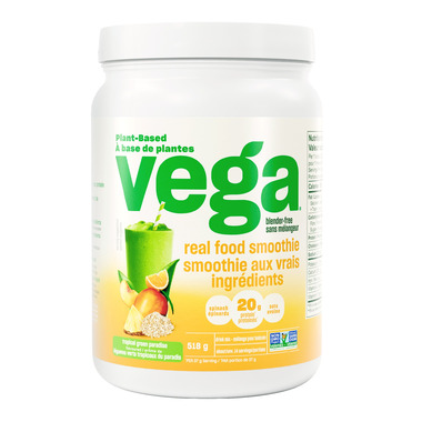 The one that’s got the tasty whole foods. Shake up a creamy smoothie on the go – no blender required. Each scoop contains 20g of protein, real food ingredients like oats and spinach and can be enjoyed wherever your day takes you, however it takes you. Available in all your favorite flavors like Tropical Green Paradise -- with no added sugar. Shake up this silky smooth, creamy smoothie, wherever your day takes you: just mix up one scoop in 350ml of ice-cold water or non-dairy beverage using a shaker cup, then sip, smile and get stuff done. Vega Real Food Smoothie is non-GMO certified, B Corp Certified, vegan and gluten free, with no added sugar.
