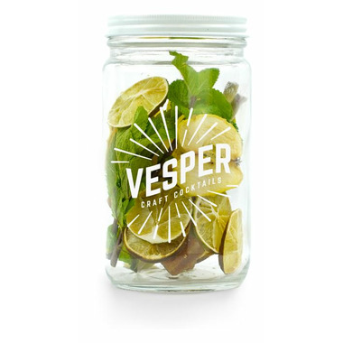 Cocktail Kit includes: ready for infusion 32oz glass jar with Lime, Mint, Apple and Bitters.