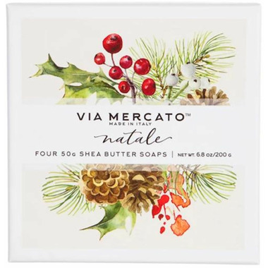 - This elegant gift box showcases four 50g Shea Butter Enriched Soaps, each infused with the beloved Natale signature fragrances alongside a special bonus scent, Winter Flowers