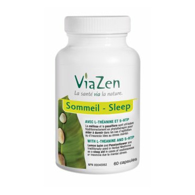 Active Ingredients: Lemon balm ? herb top (Melissa officinalis L.) Extract (10:1) : equivalent to 2000 mg of dry herb....200 mg / day* Passionflower – herb top (Passiflora incarnata L.) Extract (15:1) equivalent to 6000 mg of dry herb....280 mg / day* 5-HTP L-5-Hydroxy-tryptophan (Isolated from Griffonia simplicifolia seed)....100 mg/day* L-Theanine Green tea extract (100%)....170 mg / day* Magnesium ? citrate....140 mg / day* *Daily dosage corresponding to 2 capsules of Viazen Sleep. Non-Medicinal Ingredients: Cellulose, vegetable magnesium stearate, gelatine. Viazen Sleep is free of wheat, soy, corn, yeast, peanut, gluten, egg and dairy products. It does not contain preservatives, sweeteners, colouring agents, artificial flavours and is exempt of GMOs.