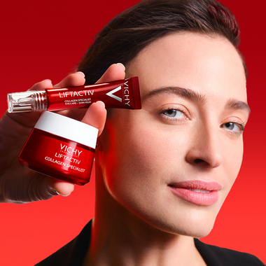 VICHY SOLUTION: NEW fragrance-free Collagen Specialist eye care, with a unique 5% pro-collagen complex [peptides + pro-Xylane + vitamin CG], acts on the eye contour for 360 correction.