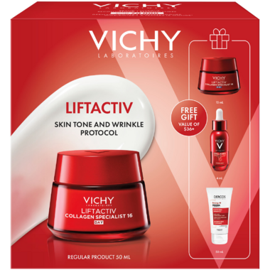 Discover Vichy's best collagen face cream. Liftactiv Collagen Specialist 16 Day Cream gives skin a firmer, plumper appearance and smoothes the appearance of wrinkles.