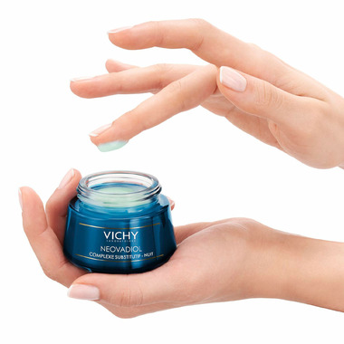 The Vichy Neovadiol Compensating Complex Night has a cooling gelified texture enriched with hydrating Aquakeep to compensate the effects of menopause on the skin during the night. At menopause, moisture is lost from the skin causing it to feel dry, density to be lost and radiance to diminish. Neovadiol Night Compensating Complex replenishes skin with moisture restoring a radiant youthful look. Skin feels denser and more supple, skin contours look more defined.