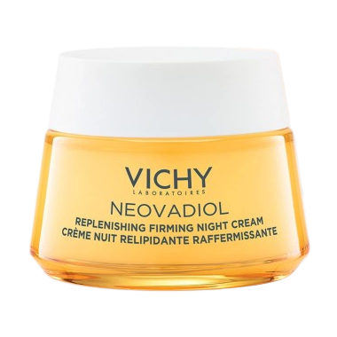 Neovadiol Replenishing Firming Night Cream reactivates skin mechanisms: sagginess, density, wrinkles. It helps compensate the impacts of menopause on the apperance of the skin by replenishing lipid loss, smoothing features and leaving skin feeling comforted and firmer. Because efficacy is our priority at Vichy, formulas have been clinically scored by dermatologists on menopausal women with sensitive skin.