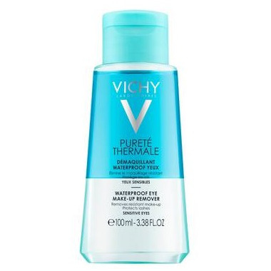 The Vichy Purete Thermale Waterproof Eye Makeup Remover removes resistant makeup, even waterproof, on lashes and eyelids. Thanks to its fortifying complex, lashes feel protected.