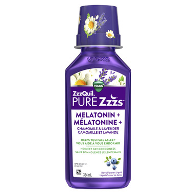 ZzzQuil PURE Zzzs Liquid Melatonin supports your body's sleep cycle. If you've been struggling with occasional sleeplessness consider trying melatonin. ZzzQuil PURE Zzzs Liquid Melatonin helps you fall asleep and wake refreshed. This melatonin liquid also contains a complementary blend of chamomile and lavender.
