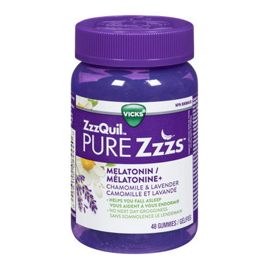 Everyone deserves a good nights sleep. Try Vicks ZzzQuil PURE Zzzs and get the sleep you need. PURE Zzzs works with your body to support sleep and is specially formulated with an optimal level of Melatonin, shown to help regulate your sleep cycle without next day grogginess.* It also contains a unique botanical blend of Lavender, Chamomile, Lemon Balm, and Valerian Root. *THESE STATEMENTS HAVE NOT BEEN EVALUATED BY THE FOOD AND DRUG ADMINISTRATION. THIS PRODUCT IS NOT INTENDED TO DIAGNOSE, TREAT, CURE, OR PREVENT ANY DISEASE.