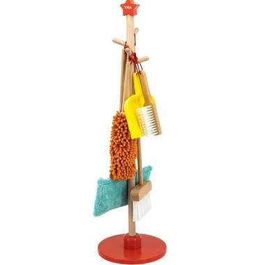 A kid-sized cleaning kit that looks just like real cleaning tools. Includes a wooden broom, mop, dustpan and more!