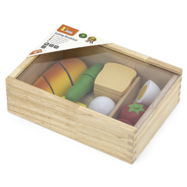 This set includes an egg, tomato, cucumber, cheese and bread to slice with the knife and wooden board.