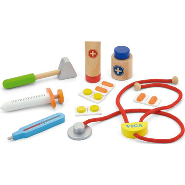 This brightly coloured wooden Medical Kit playset includes everything needed for pretend playing. This wooden playset will provide hours of fun for your little one as they pretend at being a doctor or nurse.