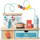 - Play with the following activities - string toy that you move the beads along, turn the rotating knob, stack the bottle, rattle the salt shaker, open the oven door, and put the fish in the pan