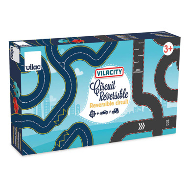 Discover our Vilacity reversible track, a wonderful way to stimulate your child's imagination. One side is a race track, the other a road, allowing for multiple combinations. Supplied with two wooden cars, this cardboard track is compatible with most small wooden or metal cars. The sturdy, lightweight cardboard allows for easy assembly and disassembly.