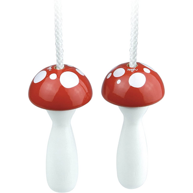 Mushroom-themed skipping rope Made in France by VILAC measures aprox 2 meters long. Suited to ages 5+.