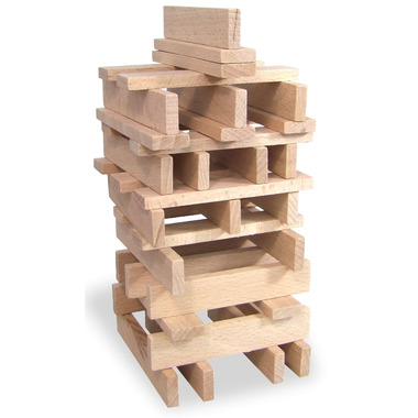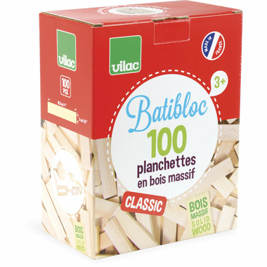 Natural wooden construction set. 100 multicoloured planks in solid beech to build creativity.