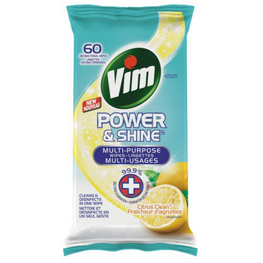 Vim® Wipes are a convenient solution to clean all types of the visible and invisible dirt all around your home. The wet wipes clean away all kinds of dirt, leaving a beautiful shine and gorgeous citrus scent behind, for a quick clean fix. Use these multi-purpose wipes to tackle tough dirt and scum all around the house. Great for bacteria elimination* on sinks, tables, stainless steel, stoves, garbage bins, toilets and plenty more.